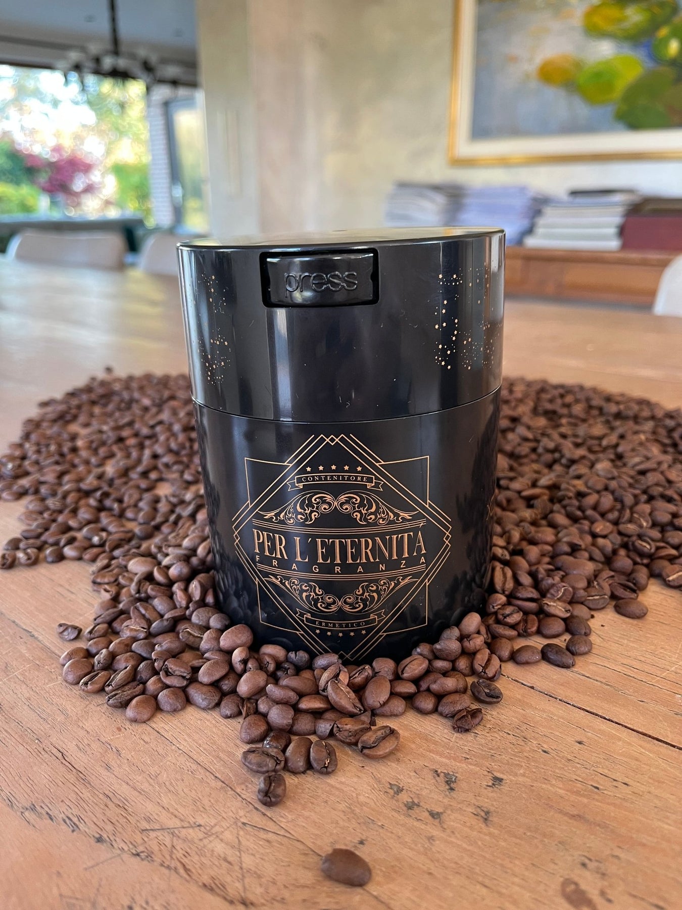 • Airtight coffee storage container