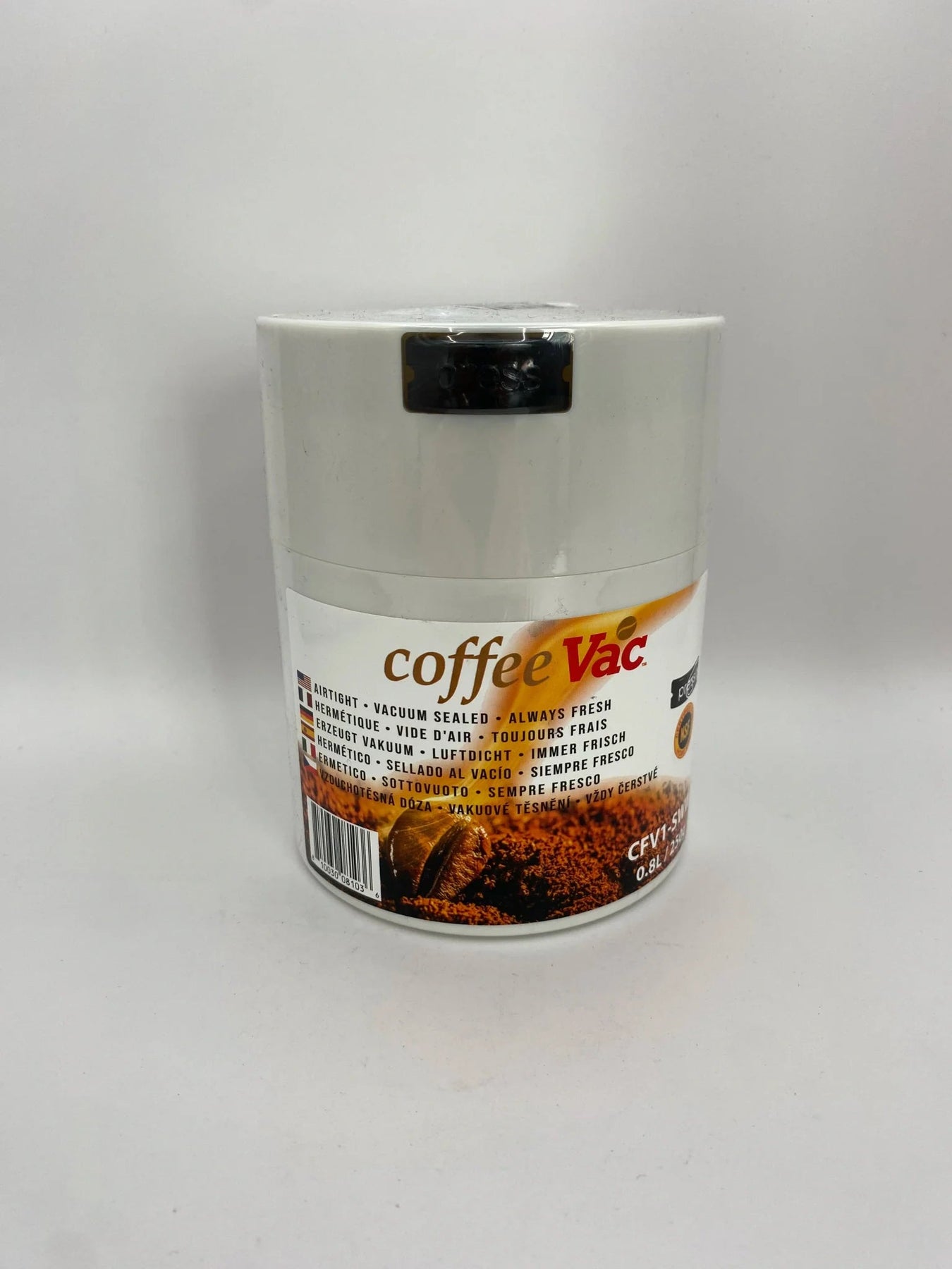 CoffeeVac - The best way to store coffee. Discover how to store coffee beans with the CoffeeVac 0.8L airtight coffee storage container—our most popular size. This premium coffee canister features patented vacuum seal technology plus an exclusive 2-way degassing valve that releases CO₂ while locking out oxygen. Holds 250g (8 oz) of coffee, the standard specialty coffee bag size, keeping beans fresh up to 3x longer.