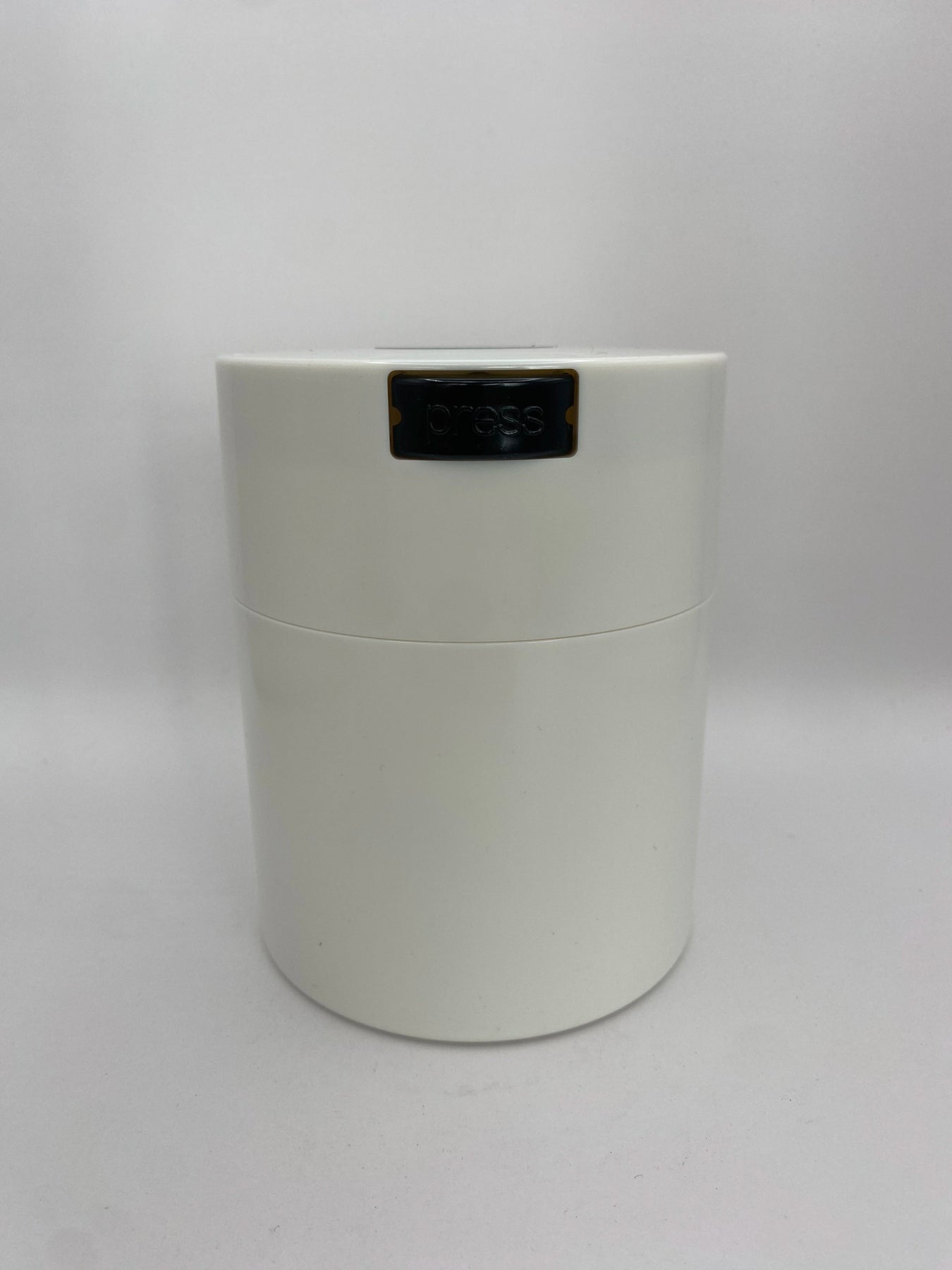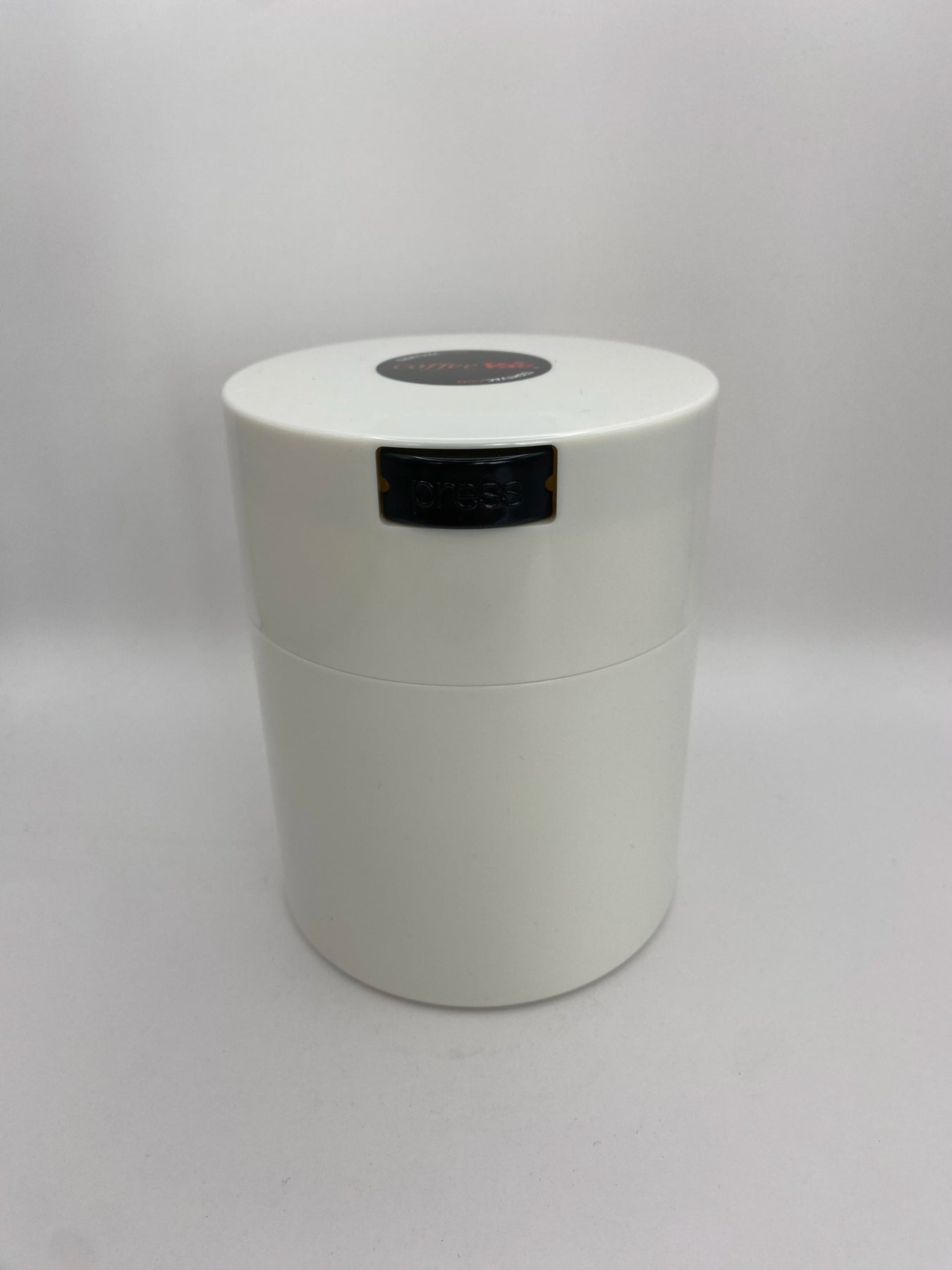This is not just an ordinary coffee tub. It’s a press-button sealed canister that protects beans from oxygen and light.